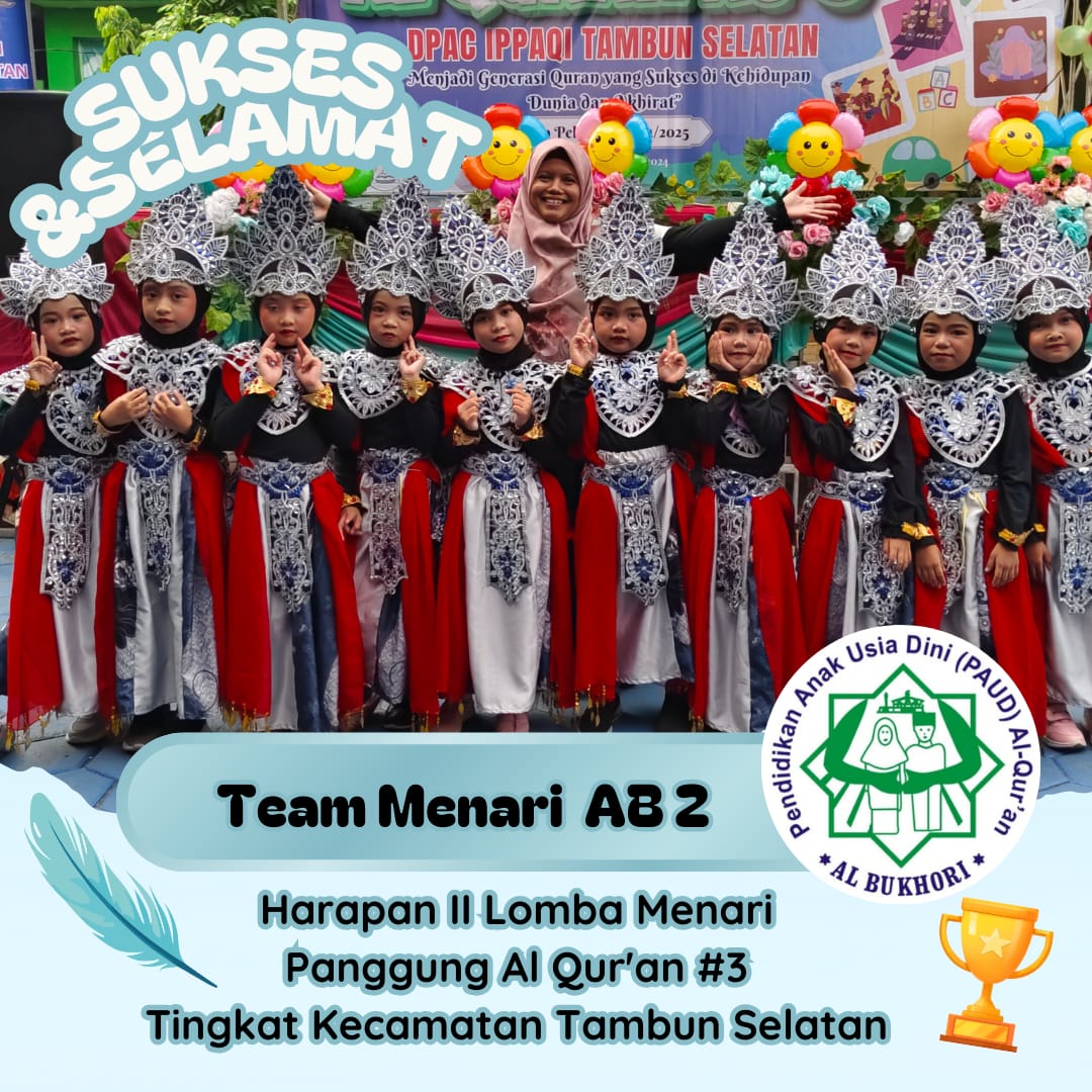Alhamdulillah, Berkat Rahmat Allah SWT. disertai ikhtiar para ustadzahnya juga dukungan para orang tua/wali santri, santri PAUDQu Al Bukhori menorehkan prestasi yang sangat membanggakan kami semua. Pada lomba antar santri PAUDQu tingkat Kabupaten Bekasi “ Panggung Al Quran ke-3”, delegasi Kecamatan Tambun Selatan yang dimotori oleh Al Bukhori berhasil mempertahankan JUARA UMUM un...